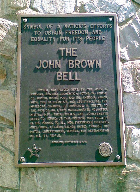 At one time it was at Harpers Ferry, but since 1892 the John Brown Bell has been in Marlborough, Massachusetts, and currently resides in a special tower built for the bell on Union Common in downtown Marlborough.